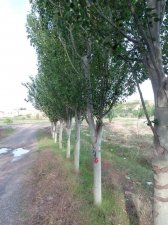 新疆杨,(拉丁文:Populus alba var. pyramidalis Bunge )是杨柳科属下的银白杨在中国南疆盆地的变种,为高15-30米的乔木植物。树冠窄圆柱形或尖塔形,树皮灰白或青灰色,光滑少裂,仅见雄株。主要分布于中亚、西亚、欧洲巴尔干地区、中国北方。新疆杨主要以播种和扦插繁殖尽心繁殖,生长缓慢,耐修剪,对有毒气体抗性强,也是城市绿化或道路两旁栽植的树种