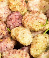 中晚熟品种,树形开张,枝条细直,叶形小,长势好,花芽率98%,单芽着果数5个左右,果长2.5-3厘米左右,果径1.5厘米左右,单果重2-3克左右,长筒形,果色乳白色带紫,果汁多,含糖量14%左右,果实成熟后,口味香甜,成熟期20-30天左右,每亩产桑叶1500kg左右,产桑果1000kg左右,适应性强,抗旱耐寒,白玉王果桑苗是一个大果型白桑椹品种,桑果适合鲜食,也可加工。长桑葚、白桑葚可以发展休闲农业,采摘园,也可以种植大棚,提前成熟期,把桑树当成果树来种植,接近成熟还要赶快掐尖,让营养充分供应到桑果上。果桑的采收时间白玉王果桑苗桑果变成紫黑色时,桑果的果柄由绿色变成黄绿色时,果实已经成熟。鲜食的品种,在桑果完全成熟时再进行采摘,如果需要长途运输的,在9成熟时即可分批采摘。早上果温较低,所以选择早上无露水的时候便可以采摘了。作为鲜果出售,可以用小盒接住,用剪刀轻轻剪下来的桑果,防止弄破桑果。如果是深加工的桑果,周边可以铺上干净的薄膜,轻轻的摇晃树枝,成熟的桑果落下后,**后收集到周转箱即可。采摘下来的新鲜桑果,需要贮存的,可在5-8度的低温下保鲜3-4天,加工用的桑果,需要马上加工,以保证原材料的新鲜度、营养成分。其他优秀果桑苗:紫椹果桑苗、黑珍珠果桑苗、无籽大十果桑苗、台湾长果桑树苗、红果1号果桑苗、红果2号果桑苗、桂花蜜果桑苗等果桑树苗以及饲料桑苗、叶桑等桑树苗白玉王果桑苗基地