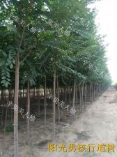 “阳光男孩”是白榆的变种,为落叶乔木,主干通直,树冠长卵圆形,速生,胸径年长量可达2.0-3.5cm;枝条红褐色,呈立枝型分枝,分枝角较小,约20-40度,侧枝均斜向上直立,树冠紧凑;胸径4-15cm时的树干呈灰绿色,无纵裂纹,幼树树皮灰绿色,表皮光滑,皮孔清晰可见。阳光男孩树干通直,可做为通道绿化和庭院绿化的景观树种,也可做为中华金叶榆专用砧木使用变成美人榆。 主要应用价值:1.干形通直,光滑美观。2.叶片肥大,生长迅速。