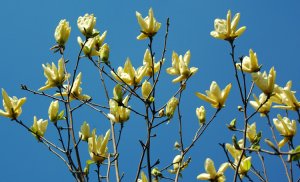 黄玉兰先花后叶,花洁白、美丽且清香,早春开花时犹如雪涛云海,蔚为壮观。天禧常在住宅的厅前院后配置,名为“玉兰堂”亦可在庭园路边、草坪角隅、亭台前后或漏窗内外、洞门两旁等处种植,孤植、对植、丛植或群植均可。黄玉兰