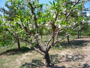 落叶小乔木,高可达8米,一般整形后控制在3-4米,小枝红褐色,无毛;叶椭圆状披针形,长7-15厘米,先端渐尖。花单生或两朵生于叶腋,重瓣,粉红色。其它变种有白色、深红、洒金(杂色)等。 生态习性: 喜光、耐旱,要求土壤肥沃、排水良好。生长期要求加强管理,施肥、灌水、除草和病虫害防治。耐寒能力不如果桃。 习性: 碧桃原产中国,世界各国均已引种栽培。必须用嫁接法繁殖,砧木用山毛桃。喜光、耐旱,要求土壤肥沃、排水良好。生长期要求加强管理,施肥、灌水、除草和病虫害防治。耐寒能力不如果桃,在北京背风处可以越冬。在园林中因花色艳丽,树形较大,观赏效果好,为春季不可缺少的观花树木。孤植、群植、建筑附近均较适宜,亦常作盆栽。 园林用途: 碧桃花大色艳,妖妍媚人,适合于湖滨、溪流、道路两侧和公园布置,也适合小庭院点缀和盆栽观赏,还常用于切花和制作盆景。常见的还有垂枝碧桃。碧桃