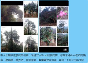 长期供应米经20-60公分山茶花树,6cm熟苗量大。感兴趣欢迎洽谈。电话:13457682980