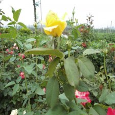 常绿或半常绿直立灌木,通常钩状皮刺。小叶3-5,广卵至卵状椭圆形,长2.5-6cm,先端尖,缘有锐锯齿,两面无毛,表面有光泽;叶柄和叶轴散生皮刺和短腺毛,托叶大部附生在叶柄上,边缘有具腺纤毛,花常数朵簇生,罕单生,径约5cm,深红、粉红、至近白色,微香;萼片常羽裂,缘有腺毛;花梗多细长,有腺毛。果卵形至球形,长1.5-2cm,红色。花期4月下旬-10月;果熟期9-11月。 观赏特性及园林用途: 月季花色艳丽,花期长,是园林布置的好材料。宜作花坛、花境及基础栽植用,在草坪、园路角隅、庭院、假山等处配植也很合适,又可作盆栽及切花用。供应大花月季_品种月季_欧月月季_大杯品种月季_小杯品种月季