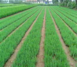 侧柏侧柏属常绿乔木,树高一般达20米,胸径可达1m。幼树树冠尖塔形,老树广圆形;树皮薄,淡灰褐色,条片状纵裂;大枝斜出;小枝排成平面,扁平,无白粉。 叶鳞片状,叶二型,中央叶倒卵状菱形,背面有腺槽,两侧叶船形,中央叶与两侧叶交互对生。雌雄同株异花,雌雄花均单生于枝顶;雄球花有6对雄蕊,每雄蕊有花药2——4;雌球花4对珠鳞,中间的2对珠鳞各有1-2胚珠。 球果阔卵形,近熟时蓝绿色被白粉,种鳞木质,红褐色,种鳞4对,熟时张开,背部有一反曲尖头,种子脱出,种子卵形,灰褐色,无翅,有棱脊。幼树树冠卵状尖塔形,老时广圆形,叶、枝扁平,排成一平面,两面同型。花期3---4月,种熟期10---11月。 侧柏是我国**广泛应用的园林树种之一。自古以来即常植于寺庙,陵墓地等处。此外,由于侧柏寿命长,树姿美,所以各地多有栽培。常用于庭院中散栽,群植或于建筑物四周种植。又因耐修剪,也可做绿篱栽培。 侧柏的管理以及种植都是需要方法的后期的管理是非常的重要的,滢涵苗木为您介绍: 若培育庭园绿化大苗时,需进行移植,计划培育 1 年的,移植株行距 10 × 20 厘米 , 2 年的株行距 20 × 40 厘米 ; 3 年的株行距 30 × 40 厘米 。 如要栽种绿篱以用两年至三年生苗木为宜,双行栽植或单行栽植,且栽植不宜过深,以土埋至比原上痕高 1 厘米 左右为宜,栽后应立即灌溉,并及时检查,如有倒伏和露根现象,需扶正和加土,有条件的能经常淋洗移栽苗更好,这样可提高成活率。 此外,苗木早春易遭生理干旱危害,要灌冻水且加强早春灌溉,据调查,本地区 2 月下旬灌溉,在很大程度上可防止苗木抽干现象,且能避开倒春寒时期,这样如果管理得当, 3-4 年绿篱基本成形。 侧柏幼树树冠尖塔形,老树广圆锥形,枝条斜展,排成若干平面,寿命极长,较少有病虫,多用于寺庙、墓地、纪念堂馆和园林绿篱。也可用于盆景制作。种子可入药。 “磨刀不误砍柴工”侧柏的种植是有一定的方法的,要注意找准方法,滢涵苗木为您介绍: 侧柏播种:侧柏适于春播,但因各地气候条件的差异,播种时间也不相同。侧柏生长缓慢,为延长苗木的生育期,应根据当地气候条件适期早播为宜,如华北地区3月中、下旬,西北地区3月下旬至4月上旬,而东北地区则以4月中、下旬为好。 侧柏种子空粒较多,通常经过水选、催芽处理后再播种。为确保苗木产量和质量,播种量不宜过小,当种子净度为90%以上,种子发芽率85%以上时,每亩播种量10千克左右为宜。 北方地区侧柏多采用高床或高垄育苗,在一些于旱地区也采用低床育苗。一般播种前要灌透底水,然后用手推播种磙或手工开沟条播。垄播:垄底宽60厘米,垄面宽30厘米,垄高12—15厘米,每垄可播双行或单行,双行条播播幅5厘米,单行宽幅条播播幅12~15厘米。 床作播种:一般床长10—20米,床面宽1米,床高15厘米,每床纵向(顺床)条播3—5行,播幅5~10厘米,横向条播,播幅3—5厘米,行距10厘米。 播种时开沟深浅要一致,下种要均匀,播种后及时覆土1~1.5厘米,再进行镇压,使种子与土壤密接,以利于种子萌发。在干旱风沙地区,为利于土壤保墒,有条件时可覆土后覆草。