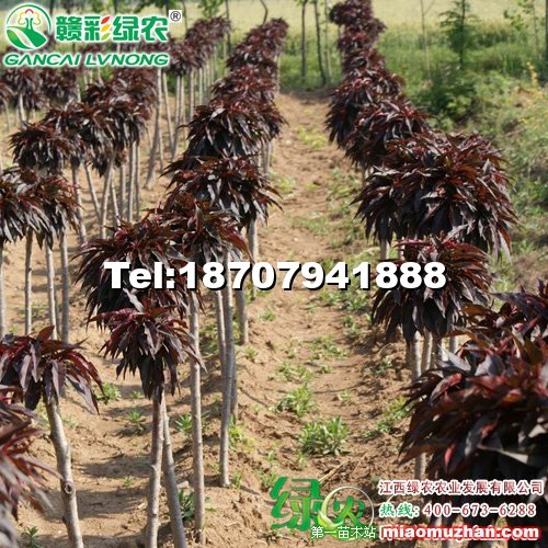 红叶寿星桃是寿星桃的一个变种,与普通寿星桃相比,红叶寿星桃的叶子常年呈紫红色、颜色鲜亮,叶片更为细长;开花繁茂、花更大,以复瓣居多,冠形饱满,株形紧凑,整株色感表现极好。适应性强,耐旱性极强,耐瘠薄,耐-23℃低温,耐高温。喜干燥环境、喜光,也稍耐盐碱和黏重土壤,但不耐水涝,适宜于排水良好的壤土中生长。应用形式更为灵活,盆栽观赏、低矮造型球、中高层列植做色带等均可。桃树是我国大部分地区园林绿化的重要树种,桃花游已成为人们初春踏青的首选之一。红叶寿星桃,它不仅可以赏花,其鲜亮的红叶也十分惹眼。此树种集观红叶、赏花、看桃果于一身,适应性强、应用形式多样,未来的市场前景不容小觑,其推广应用前景乐观。供苗:试种200株33元每株,种植1000株以上30元每株,最少50株起邮35元每株。