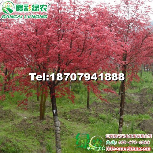日本红枫,它既是理想的园林景观树,又是制作盆景的好材料。小乔木,生长速度中等偏慢,地栽高5~8米,树姿优美,分枝平展,层层如云,姿态婆娑,叶形秀丽,春秋叶片鲜红色,盛夏紫红;5月开花,花色淡红,花后结翅果,形如元宝,种子10月成熟。日本红枫树性强健,对环境要求不严,耐半荫,喜肥沃、湿润且排水良好的土壤,耐-25℃低温,东北地区盆栽可在室内或大棚中越冬。供苗:试种100株7.5元每株,种植1000株以上7元每株,最少50株起邮8元每株。