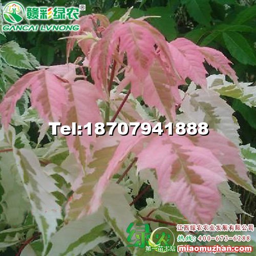 原产欧洲,落叶灌木或小乔木,是复叶槭的栽培变种。树形美观大方,幼叶是柔和的粉色,整个生长季节一直保持,成熟叶呈现黄白色与绿色相间的班驳叶色,老叶浅绿色。具白色边缘。从春季到秋季,整个植株一直笼罩在一片粉色的天地中,透着轻盈和独特,是目前槭树种中惟一的粉色叶品种,十分美丽。生长强健,适生范围广,喜光,耐寒,耐瘠薄,适合在我国华北、华东及华中地区推广应用。彩叶树种美中极品,观赏价值极高,可广泛用于庭院、公园、休闲场所的绿化美化。供苗:试种20株40元每株,种植100株以上38元每株。