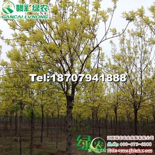 金叶白蜡是我国落叶乔木白蜡树的彩叶新品种。枝叶稠密,树形优美。春季小芽初发,像满树金黄的腊梅枝头绽开,一派高雅动人之态。叶片展开像一朵朵金色的花朵满树怒放,娇滴滴鲜艳可爱。七月底以前叶片全部金黄,七月底以后的整个生长季节嫩叶金黄,逐渐变为黄绿色,老叶变为绿色更衬托像绿叶黄花格外娇。三季观"花"(初春象腊梅、春、夏象花朵)、观叶,在落叶前的20多天内,满树叶片皆变为黄色。整个观赏期200多天。用金叶白蜡给绿树作点缀,远眺,万绿丛中一片金,极具诗情画意。近看,满树叶片皆黄,金灿灿闪亮动人。给庭院绿化满院金色富贵吉祥,给山城美化从上望下看金灿灿的象一个聚宝盆,给荒山绿化那就是一坐金山.不但可做行道树、孤植成景,而且还可以做绿篱和修剪造型。金叶白蜡耐干旱、耐瘠薄,耐盐碱,耐酸性土壤,还耐一定的水湿,特别耐寒,能耐-40℃低温,抗二氧化硫,抗氯气,抗氯化氢,抗烟尘,能适应各种土壤,可广泛栽种于阳坡、山麓、沟谷、水边、丘陵、平原、草原地带,适合全国南北方种植,市场前景非常乐观,是优良乡土彩叶树种。为我国园林造景增添了宝贵的资源,将成为二十一世纪绿化先锋树种。供苗:试种200株11元每株,种植1000株以上10元每株,最少50株起邮12元每株。
