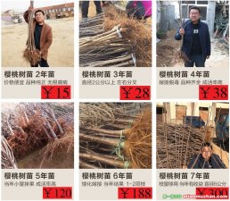 烟台市福山区瑞丰大樱桃专业合作专业批发直销樱桃树苗美早、岱红、桑提娜、福星、萨米脱、黑珍珠、拉宾斯、红灯等品种大樱桃车厘子树苗,本社有1-6cm粗直径,跟踪服务两年,提供科学管理技术。欢迎来电咨询