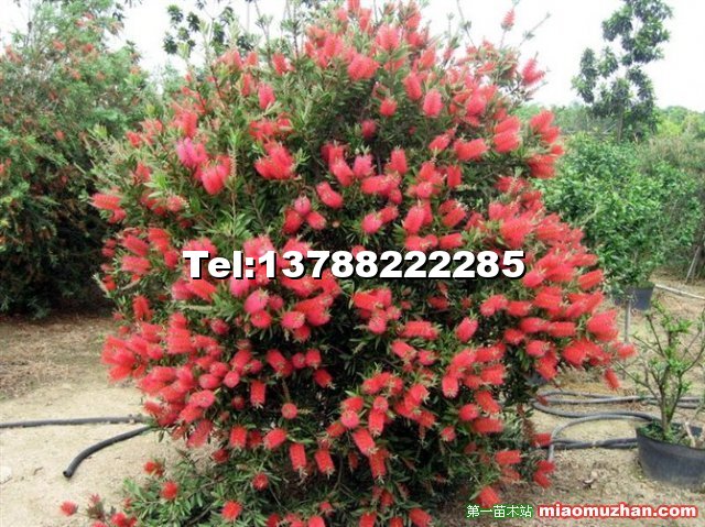 美花红千层属常绿灌木或小乔木,高2-3m,叶互生,条形有透明腺点,富含芳香气味,寿命长,每片叶可维持3-6年不等,新老叶片聚生,形成叶幕层次。一年多次开花,盛花期在每年的2月份前后,长达2个月,花期长,花艳丽而形奇特,花序着生在树梢,只看雄蕊而不见花朵。雄蕊数量多,花丝长,颜色鲜艳,排列稠密,整个花须犹如一把瓶刷子。 喜暖热气候,能耐烈日酷暑,不耐荫,喜肥沃潮湿的酸性土壤,也能耐瘤薄干旱的土壤。在抗寒抗逆等综合性状方面有显著优势,在零下7度至40摄氏度的环境下生长良好。