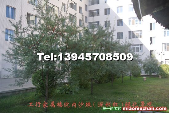 夏季效果;沙棘(深秋红)原产地芬兰,树高可达4-5米,挂果红色、经冬不落;无需病虫害防治,耐寒耐瘠薄。集生态、经济、景观价值于一身,包栽保活。