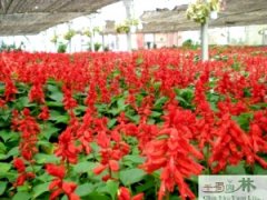 一串红原产巴西,为唇形科草本花卉。一串红花期长,从夏末到深秋,开花不断,且不易凋谢,是布置花坛的理想花卉。据称,花还有紫色的,称一串紫;白色花的,称一串白;粉色花的,一串粉。一串红的果实为小坚果,椭圆形,内含黑色种子,易脱落,能自播繁殖。