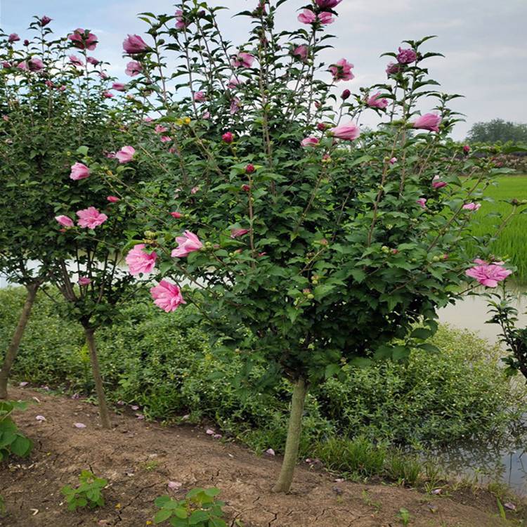 购买木槿树到沭阳环美园林绿化苗木场,本园林常年供应大量木槿树,杆径挺分枝多,姿态优美。沭阳原产地直销,质量好,规格齐全,发货快。了解木槿树当季价格,请电话联系沭阳环美园林。