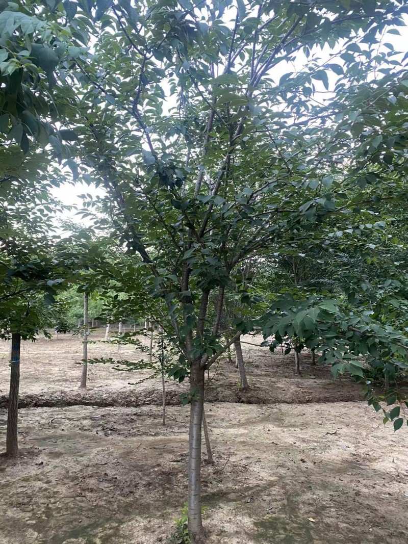 樱花是乔木,高4-16米,树皮灰色。小枝淡紫褐色,无毛,嫩枝绿色,被疏柔毛。冬芽卵圆形,无毛。叶片椭圆卵形或倒卵形,长5-12厘米,宽2.5-7厘米,先端渐尖或骤尾尖,基部圆形,稀楔形,边有尖锐重锯齿,齿端渐尖,有小腺体,上面深绿色,无毛,下面淡绿色,沿脉被稀疏柔毛,有侧脉7-10对;叶柄长1.3-1.5厘米,密被柔毛,顶端有1-2个腺体或有时无腺体;托叶披针形,有羽裂腺齿,被柔毛,早落。