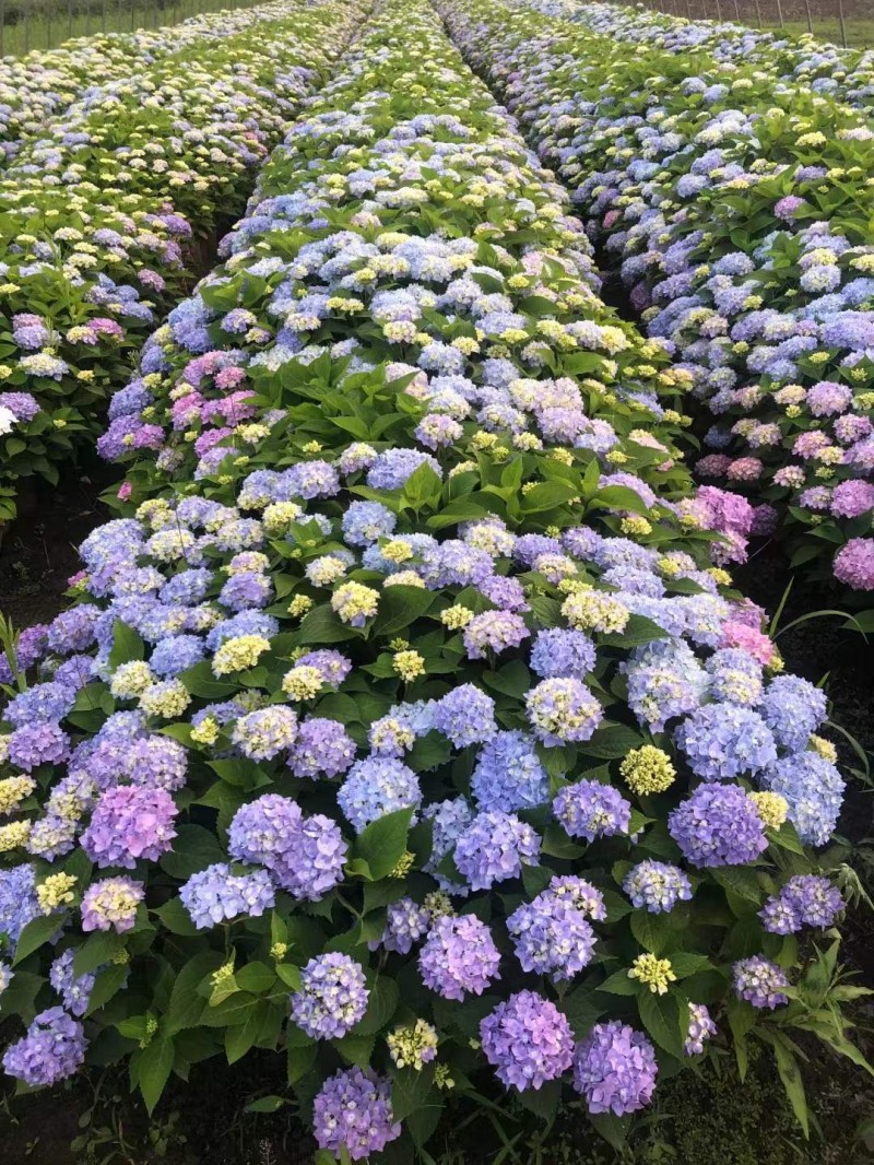 无尽夏,是绣球的一个变种,花球直径至少18cm,在酸性土壤中开蓝色花球,在中性土壤中,花球可以同时见蓝色和粉色花,因整个夏季都能绽放花朵,由此得名。花期为6-9月,耐寒区:4-9,成熟植株高度约为150*150cm。